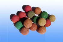 ·金剛砂膠球 金剛砂膠球分為全金剛砂膠球和半金剛砂膠球兩種。金剛砂膠球適用于清除各種結(jié)垢沉積較多的管道,但對(duì)管子有傷害,一般不長(zhǎng)期使用,特別銅管更慎用。 有效去除硬質(zhì)結(jié)垢,如:碳酸鈣。適用于鋼管、不銹鋼管換熱器。